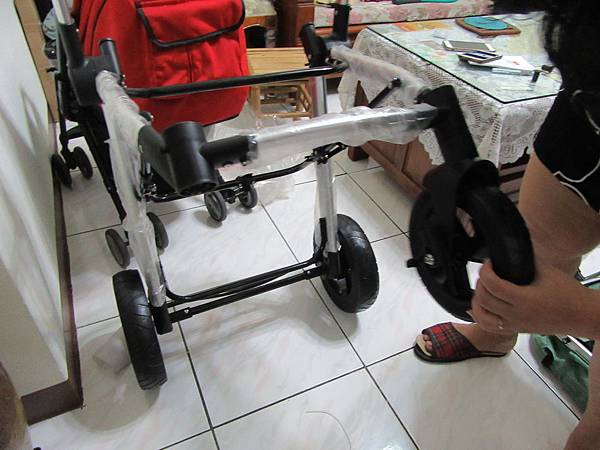 前輪可360度旋轉外,還可以固定直線,後輪煞車一踩就行了