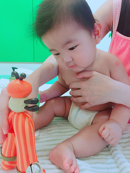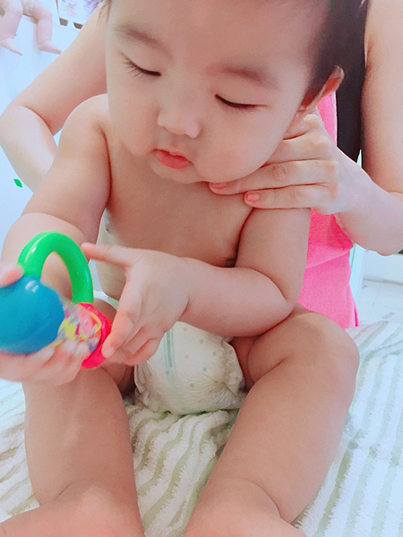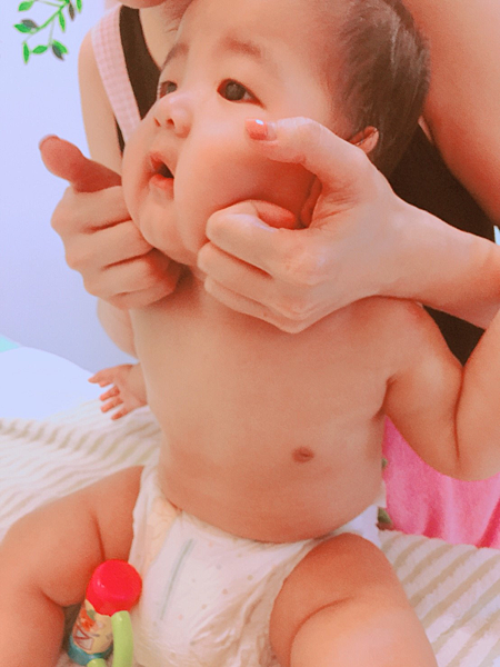 連臉部按摩也有喔,服務姐姐還教我們~萬一以後寶貝長牙了不舒服