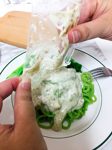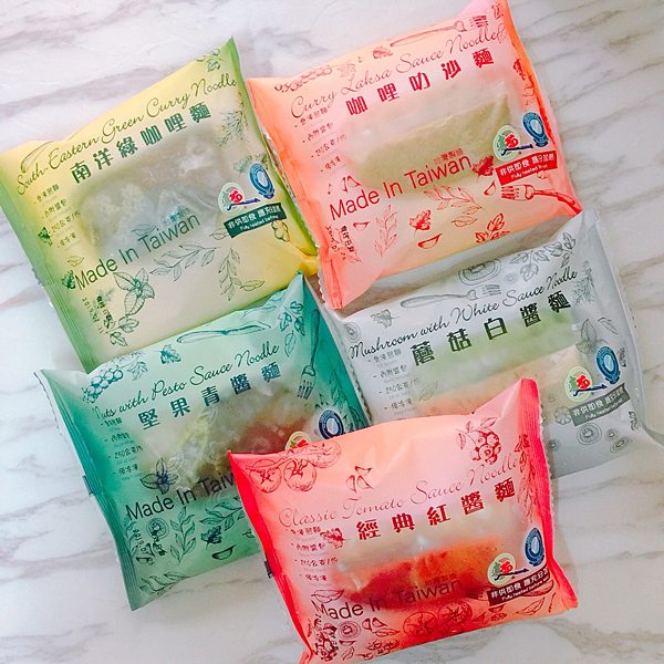 這次總共有經典紅醬麵、蘑菇白醬麵、南洋綠咖哩醬麵、