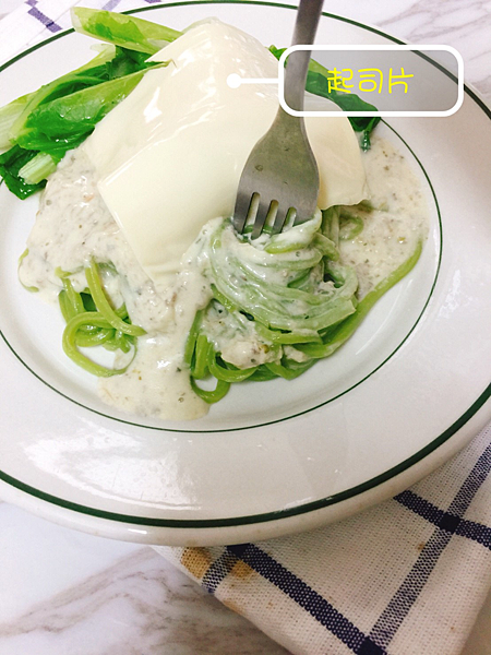 喜歡白醬口味濃郁感厚重的人也可以學我一樣加一片起司喔很讚喔